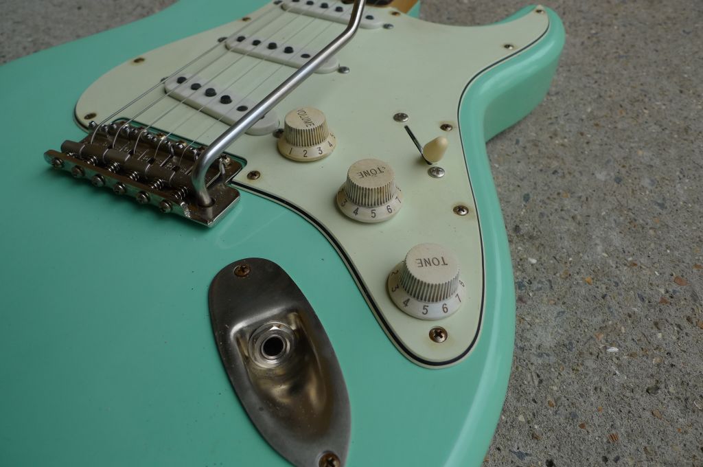 The Tele body is surf green nitro