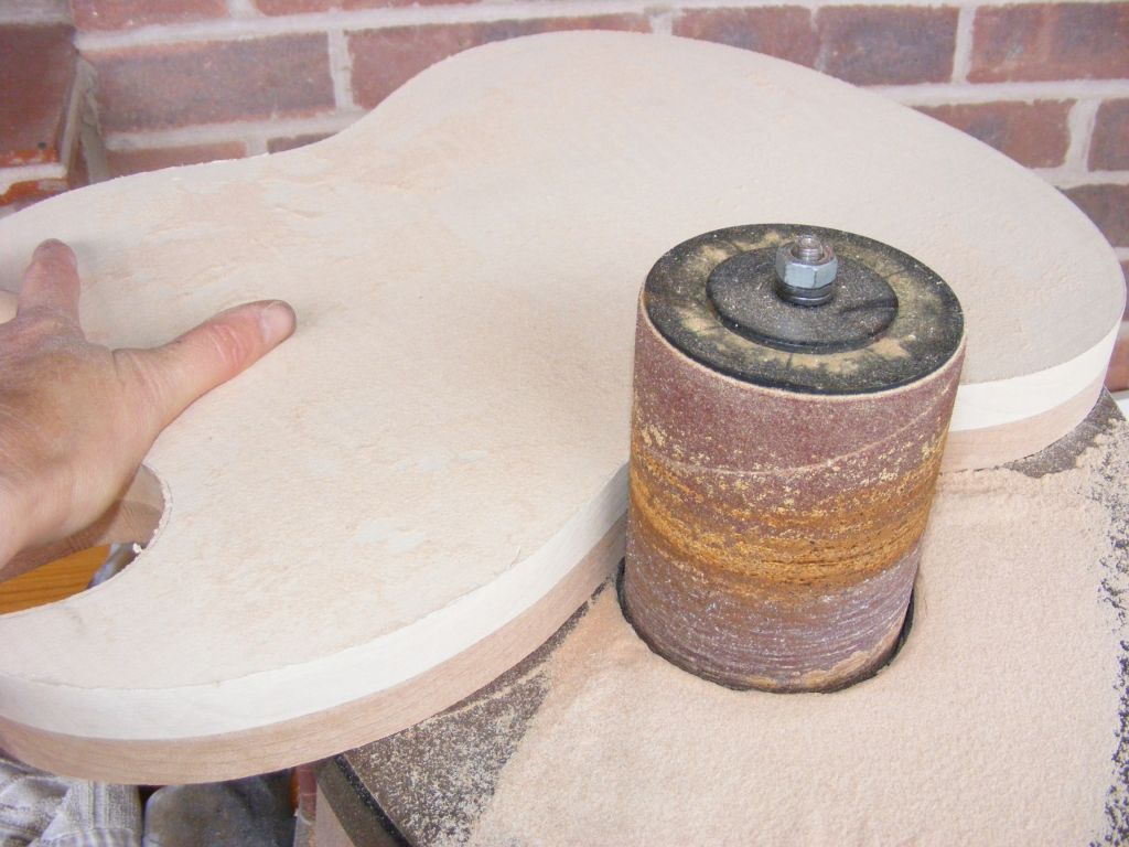 After routing for the neck, pickups and control cavity we hand carved the bevels to shape.