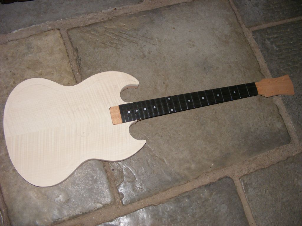Currently making a carved top offset custom body in swamp ash and highly figured sycamore.