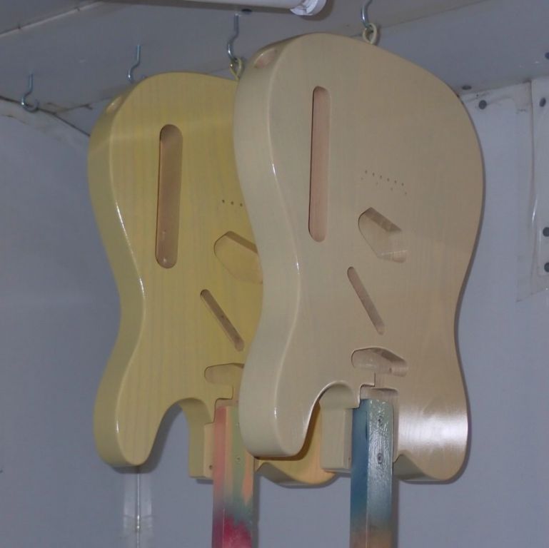 Just made these 2 strat bodies and finished them in surf green.....the one on the left is sold along with a nitro finished neck, the other is available and can be aged to taste!