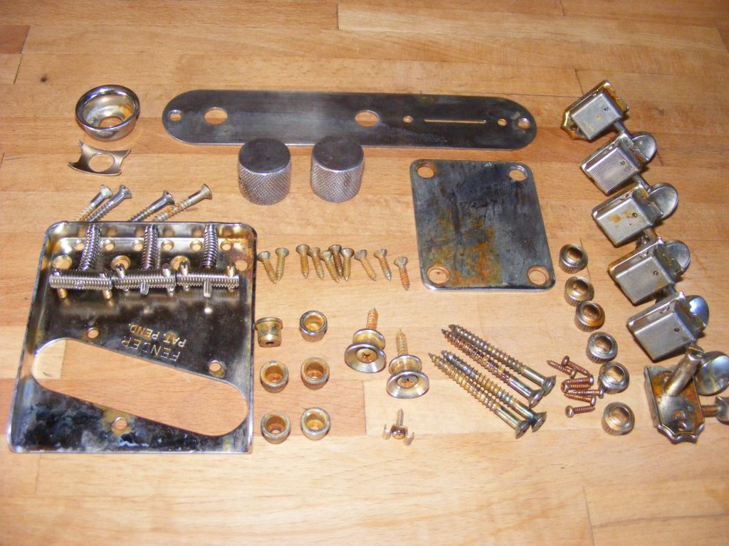 All the hardware you'll need, aged nickel, '50's style. For a full list of parts and spec, see the hardware page.